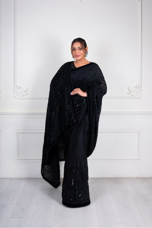 Black Sequin Work Designer Saree